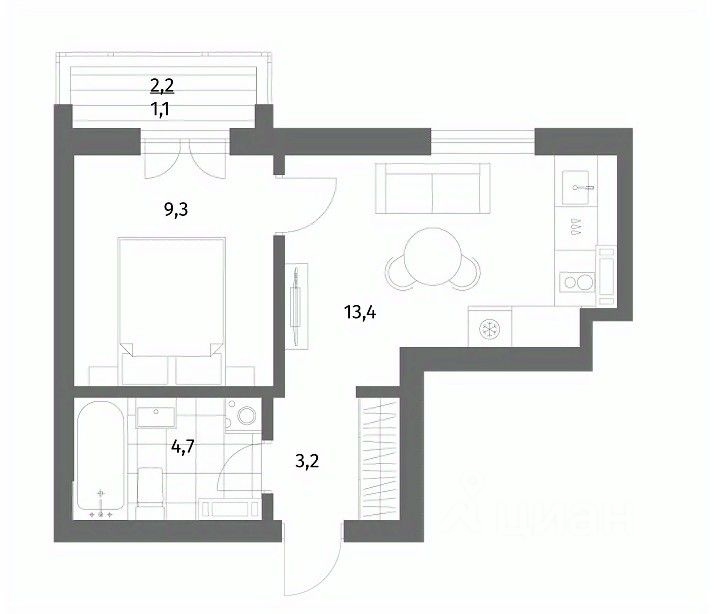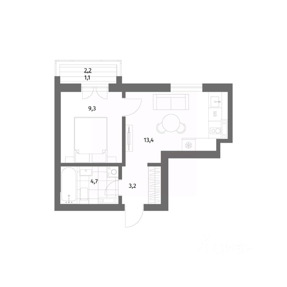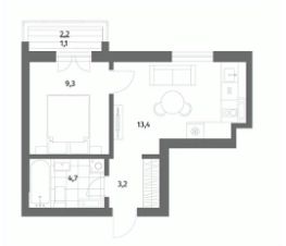 9,3 м²