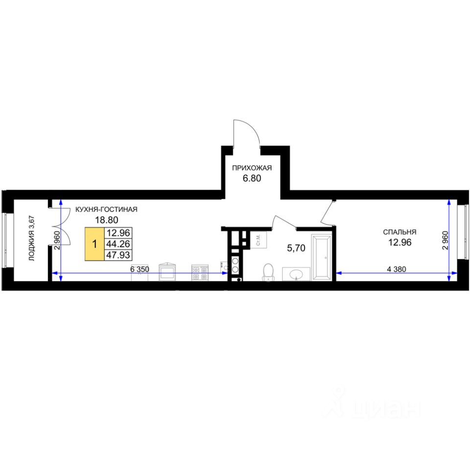 Однокомнатная квартира — это гармоничное сочетание современной планировки, естественного света и продуманной функциональности. Пространство легко зонируется на спальную и гостиную зоны, а просторная кухня с возможностью размещения полноценной обеденной группы становится центром домашнего уюта и встреч с близкими. Лоджия, выходящая из жилой зоны, расширяет полезную площадь: здесь можно организовать рабочий уголок, мини-оранжерею или уютное место для отдыха с чашкой кофе утром.
