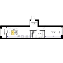Продается 1-комн. квартира, 48,4 м²