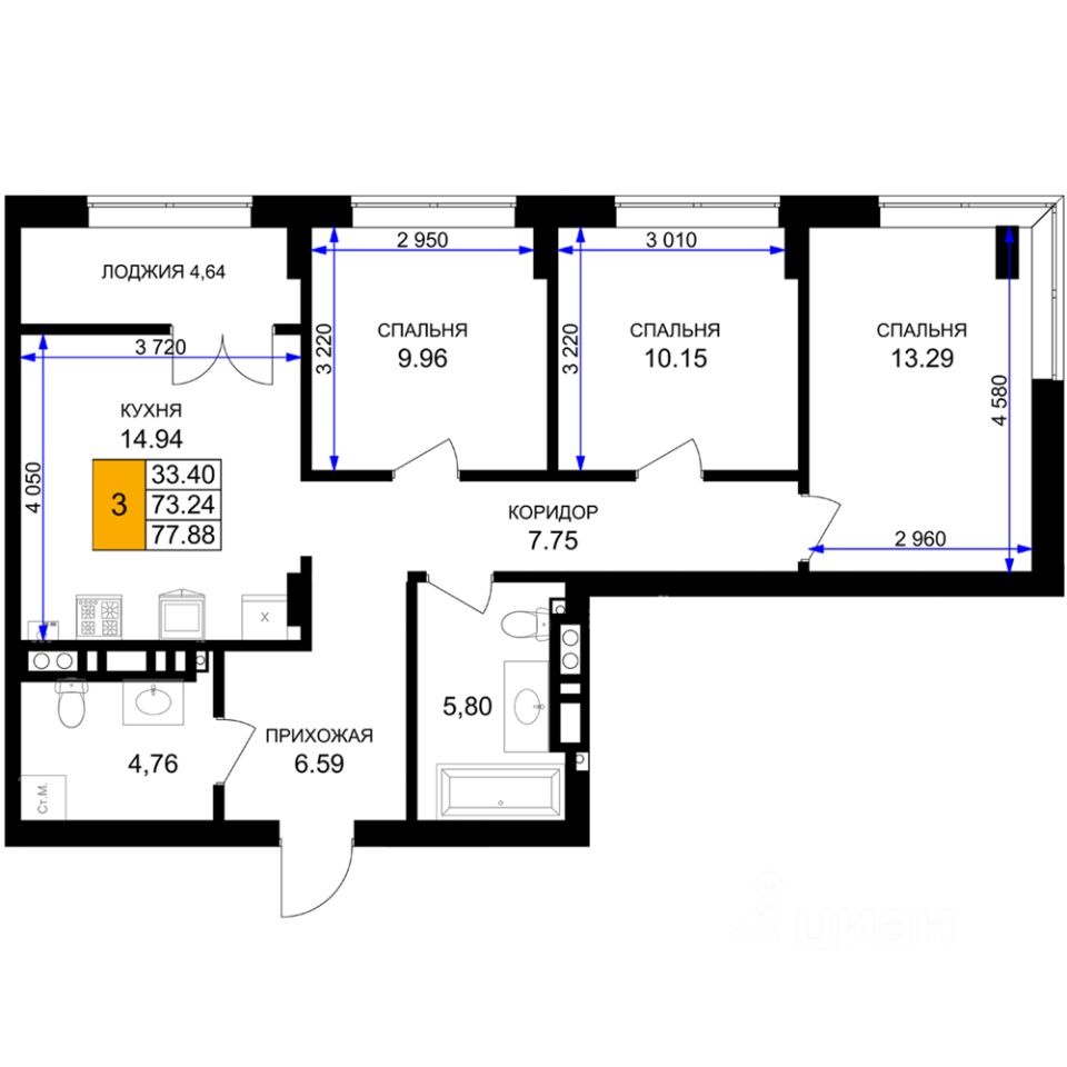 Общая площадь77,88 м²