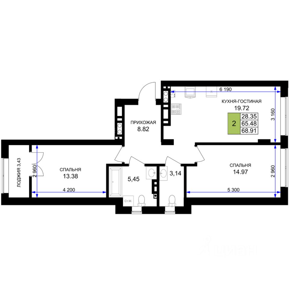 Общая площадь69,9 м²