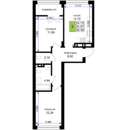 Продается 2-комн. квартира, 58,48 м²