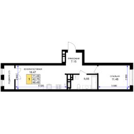 Однокомнатная квартира — это гармоничное сочетание современной планировки, естественного света и продуманной функциональности. Пространство легко зонируется на спальную и гостиную зоны, а просторная кухня с возможностью размещения полноценной обеденной группы становится центром домашнего уюта и встреч с близкими. Лоджия, выходящая из жилой зоны, расширяет полезную площадь: здесь можно организовать рабочий уголок, мини-оранжерею или уютное место для отдыха с чашкой кофе утром.