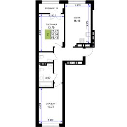 Продается 2-комн. квартира, 63,43 м²
