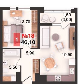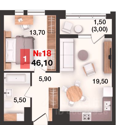 Общая площадь46,1 м²