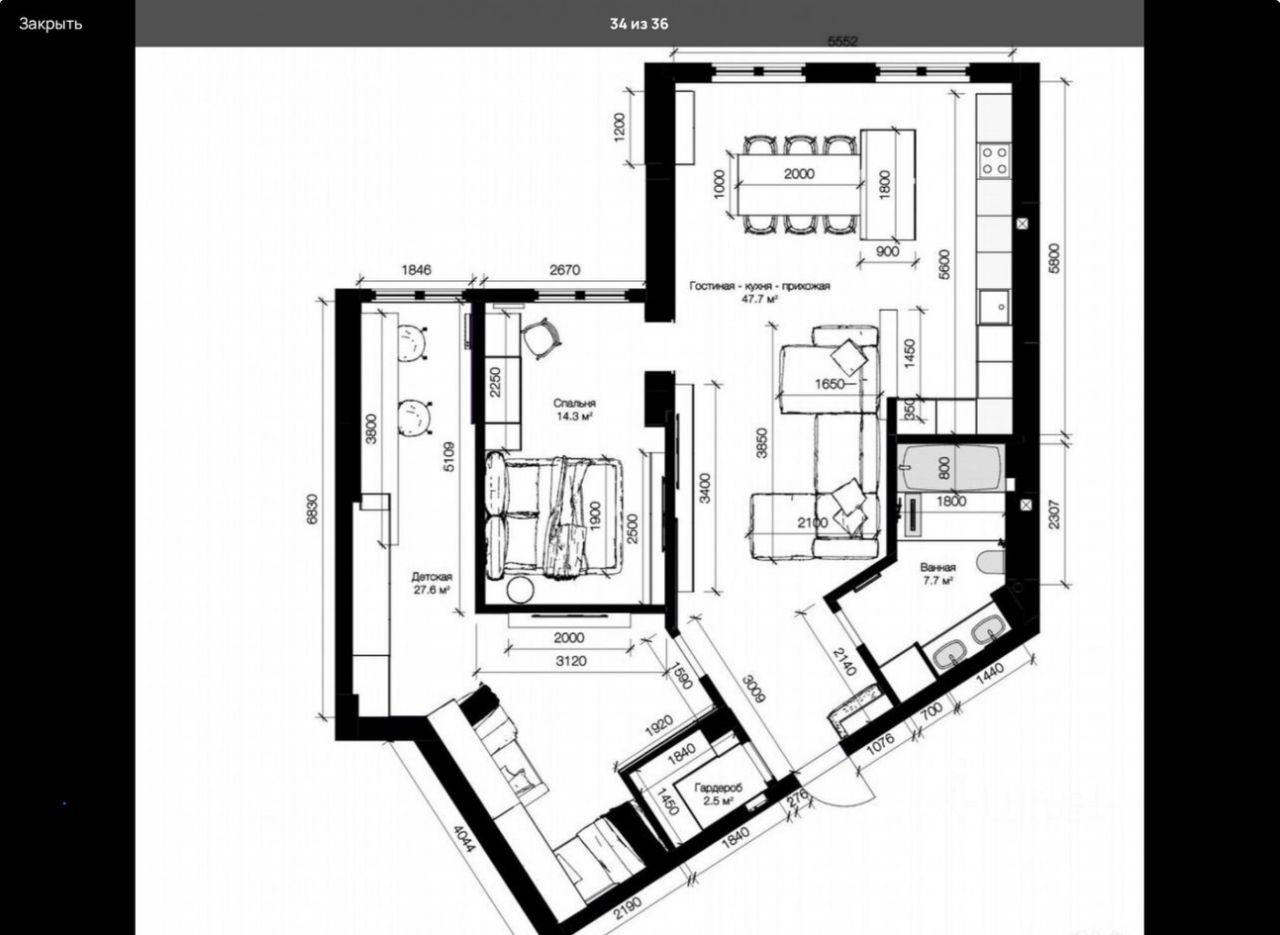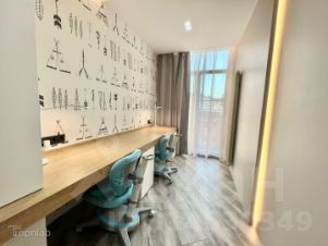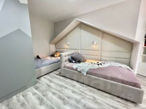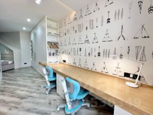 Просторная гостиная, вместительная скрытая гардеробная. Продуманная детская с двумя кроватями и большим рабочим столом. Спальня с местами для хранения, большая кровать (матрас Аскона).