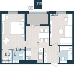 Продаётся 2-комнатная квартира в строящемся доме (Дом 34), срок сдачи: IV-кв. 2026, общей площадью 69.61 кв.м., на 3 этаже.