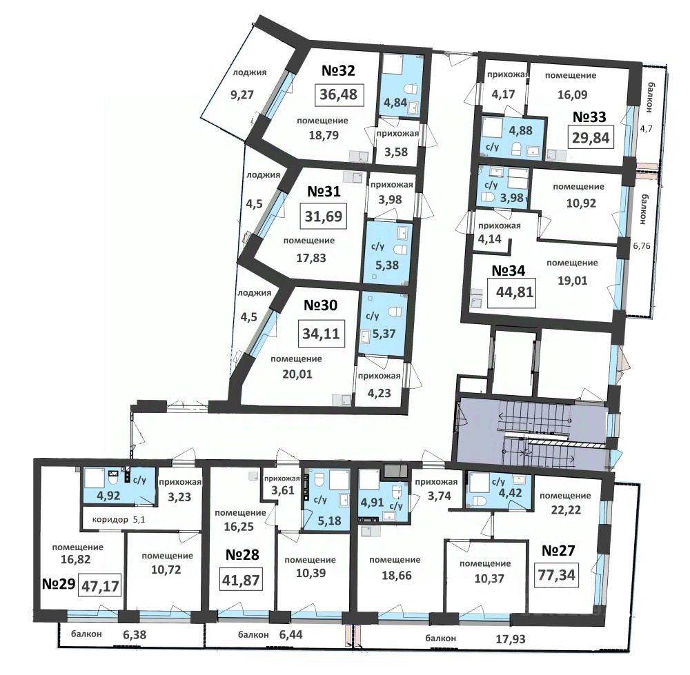 Апартаменты площадью от 29.84 до 114.47 кв.м.