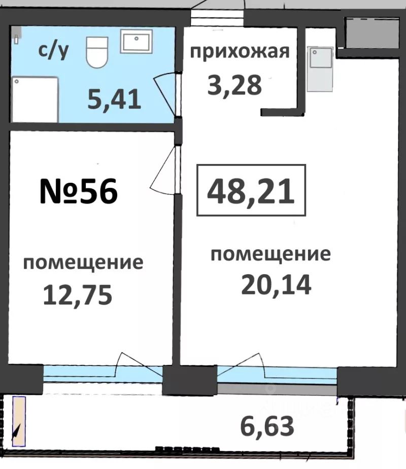 Общая площадь48,21 м²