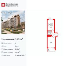 Удобная, классическая, функциональная европланировка, большая кухня-гостиная 15.82 м², просторная прихожая 4.17 м². Общая площадь квартиры - 39.31 м², жилая 13.73 м², высота потолка 3 м.