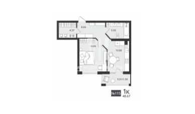 Удачное планировочное решение позволяет организовать комфортное пространство из видовой спальни и просторной кухни площадью 10,68 кв.м.