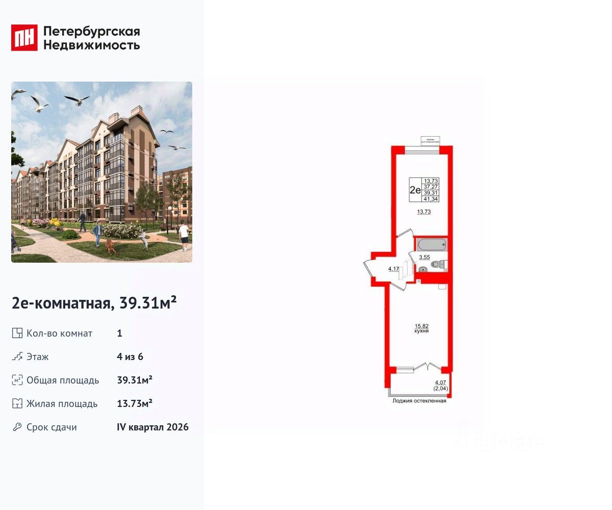 Удобная, классическая, функциональная европланировка, большая кухня-гостиная 15.82 м², вместительная прихожая 4.17 м². Общая площадь квартиры - 39.31 м², жилая 13.73 м², высота потолка 3 м.