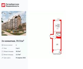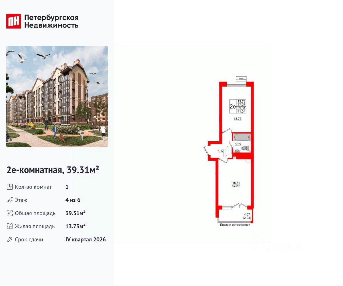 Удобная, классическая, функциональная европланировка, большая кухня-гостиная 15.82 м², просторная прихожая 4.17 м². Общая площадь квартиры - 39.31 м², жилая 13.73 м², высота потолка 3 м.