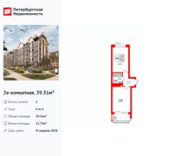Удобная, классическая, функциональная европланировка, большая кухня-гостиная 15.82 м², просторная прихожая 4.17 м². Общая площадь квартиры - 39.31 м², жилая 13.73 м², высота потолка 3.3 м.