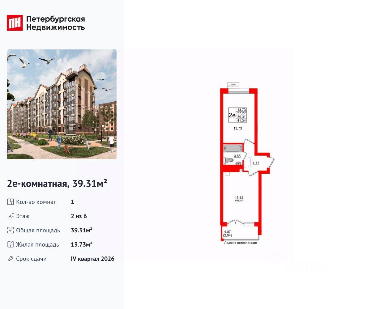 Удобная, классическая, функциональная европланировка, большая кухня-гостиная 15.82 м², вместительная прихожая 4.17 м². Общая площадь квартиры - 39.31 м², жилая 13.73 м², высота потолка 3 м.