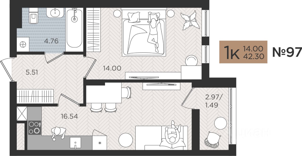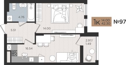 Продается комфортабельная 1 комнатная квартира 97 на Советском проспекте, 50 в ЖК "МОЙ ГОРОД"