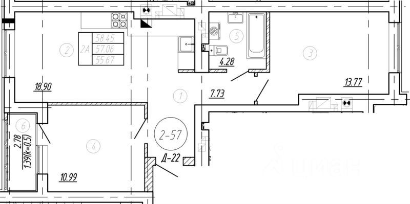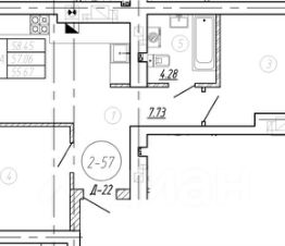 Квартира: 2 к 57,06 кв.м., 3 этаж в комплексе Подсолнухи, 4 очередь, корп.6, сдача: 4кв. , этажей: 9, адрес Калининград г., Крейсерская ул., , Застройщик: Модуль-Стройград. Номер в базе: J26193L21816