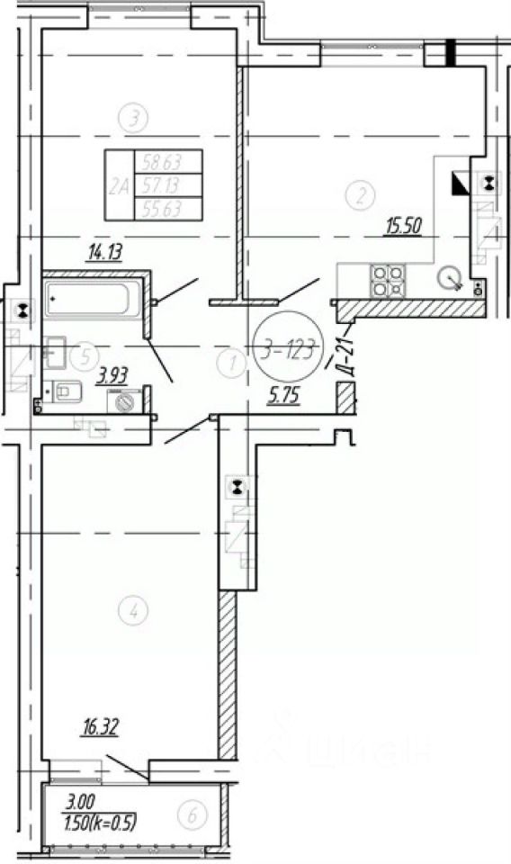 Квартира: 2 к 57,13 кв.м., 8 этаж в комплексе Подсолнухи, 4 очередь, корп.6, сдача: 4кв. , этажей: 9, адрес Калининград г., Крейсерская ул., , Застройщик: Модуль-Стройград. Номер в базе: J26193L21872