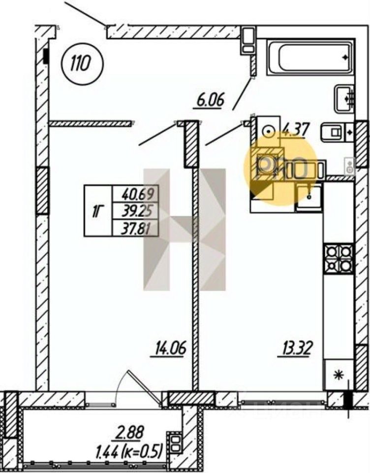 Квартира: 1 к 39,05 кв.м., 5 этаж в комплексе Seven, 2 очередь, корп.2, сдача: 4кв. , этажей: 9, адрес Калининград г., Батальная ул., , Застройщик: КалининградСтройИнвест.