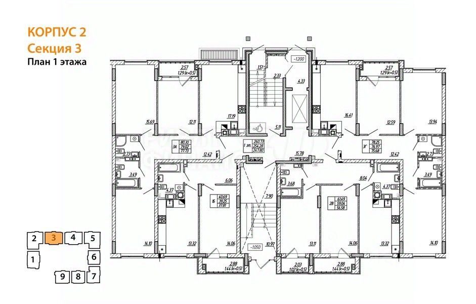 Квартира: 3 к 80,50 кв.м., 9 этаж в комплексе Seven, 2 очередь, корп.2, сдача: 4кв. , этажей: 9, адрес Калининград г., Батальная ул., , Застройщик: КалининградСтройИнвест.