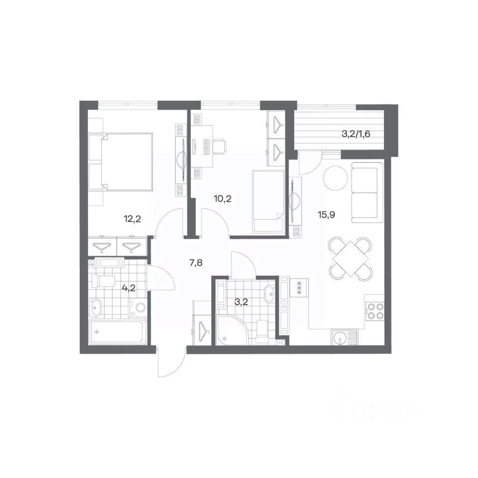 в Гагарина 30 от компании ГК "ТРЕСТ". Площадь кухни 15.8 м².  Жилой комплекс комфорт-класса "Гагарина 30" расположен в Ленинградском районе Калининграда на улице Юрия Гагарина. Жилой комплекс включает в себя три корпуса высотой 9-18 этажей. Срок сдачи намечен на 1 квартал 2028 года.