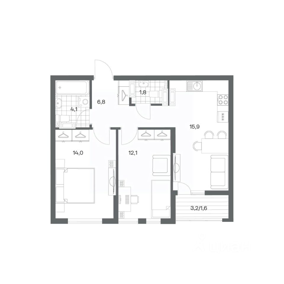 в Гагарина 30 от компании ГК "ТРЕСТ". Площадь кухни 15.9 м². Жилой комплекс комфорт-класса "Гагарина 30" расположен в Ленинградском районе Калининграда на улице Юрия Гагарина. Жилой комплекс включает в себя три корпуса высотой 9-18 этажей. Срок сдачи намечен на 1 квартал 2028 года.