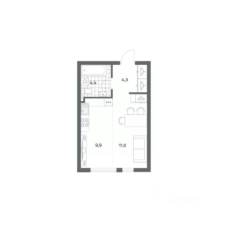 в Гагарина 30 от компании ГК "ТРЕСТ". Площадь кухни 9.9 м². Жилой комплекс комфорт-класса "Гагарина 30" расположен в Ленинградском районе Калининграда на улице Юрия Гагарина. Жилой комплекс включает в себя три корпуса высотой 9-18 этажей. Срок сдачи намечен на 1 квартал 2028 года.