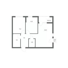 в Гагарина 30 от компании ГК "ТРЕСТ". Площадь кухни 18.4 м². Жилой комплекс комфорт-класса "Гагарина 30" расположен в Ленинградском районе Калининграда на улице Юрия Гагарина. Жилой комплекс включает в себя три корпуса высотой 9-18 этажей. Срок сдачи намечен на 1 квартал 2028 года.