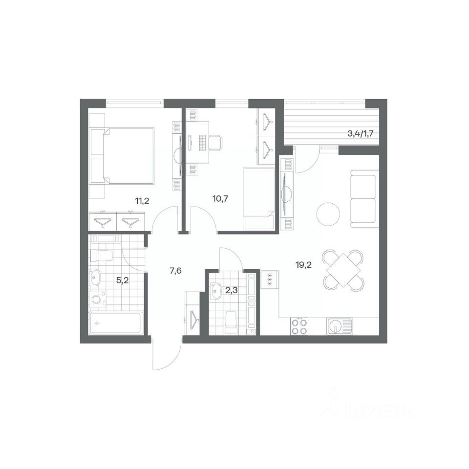 в Гагарина 30 от компании ГК "ТРЕСТ". Площадь кухни 19.2 м². Жилой комплекс комфорт-класса "Гагарина 30" расположен в Ленинградском районе Калининграда на улице Юрия Гагарина. Жилой комплекс включает в себя три корпуса высотой 9-18 этажей. Срок сдачи намечен на 1 квартал 2028 года.