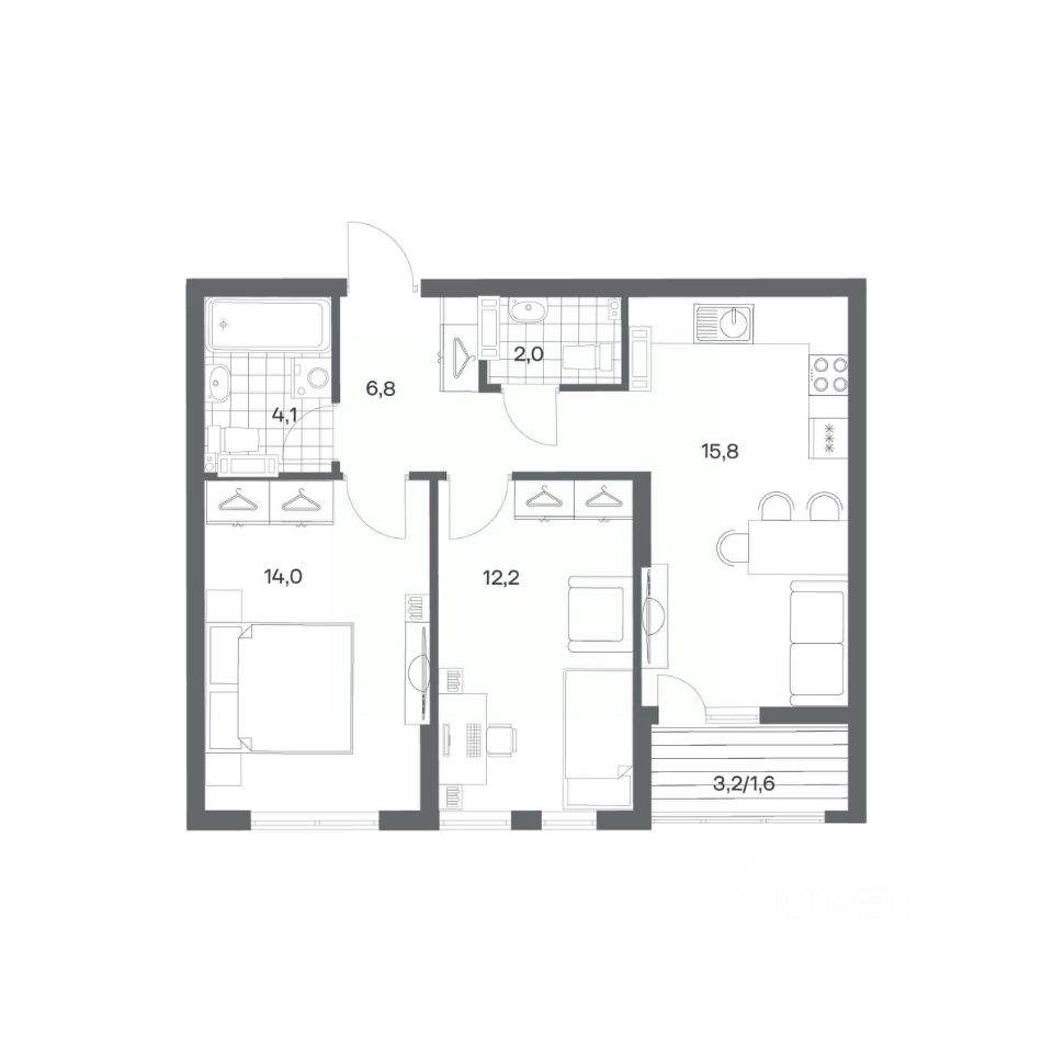 в Гагарина 30 от компании ГК "ТРЕСТ". Площадь кухни 15.8 м². Жилой комплекс комфорт-класса "Гагарина 30" расположен в Ленинградском районе Калининграда на улице Юрия Гагарина. Жилой комплекс включает в себя три корпуса высотой 9-18 этажей. Срок сдачи намечен на 1 квартал 2028 года.