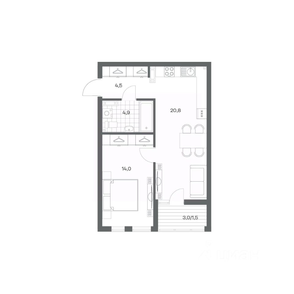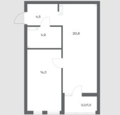 в Гагарина 30 от компании ГК "ТРЕСТ". Площадь кухни 20.8 м². Жилой комплекс комфорт-класса "Гагарина 30" расположен в Ленинградском районе Калининграда на улице Юрия Гагарина. Жилой комплекс включает в себя три корпуса высотой 9-18 этажей. Срок сдачи намечен на 1 квартал 2028 года.