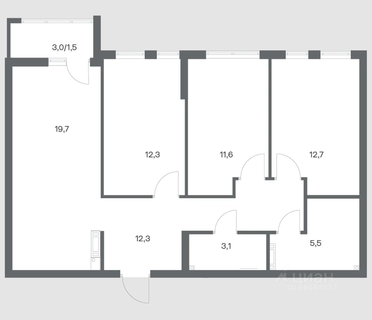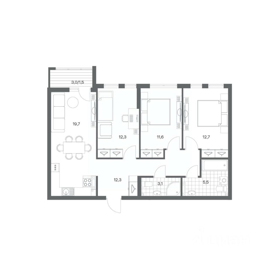 в Гагарина 30 от компании ГК "ТРЕСТ". Площадь кухни 19.7 м². Жилой комплекс комфорт-класса "Гагарина 30" расположен в Ленинградском районе Калининграда на улице Юрия Гагарина. Жилой комплекс включает в себя три корпуса высотой 9-18 этажей. Срок сдачи намечен на 1 квартал 2028 года.