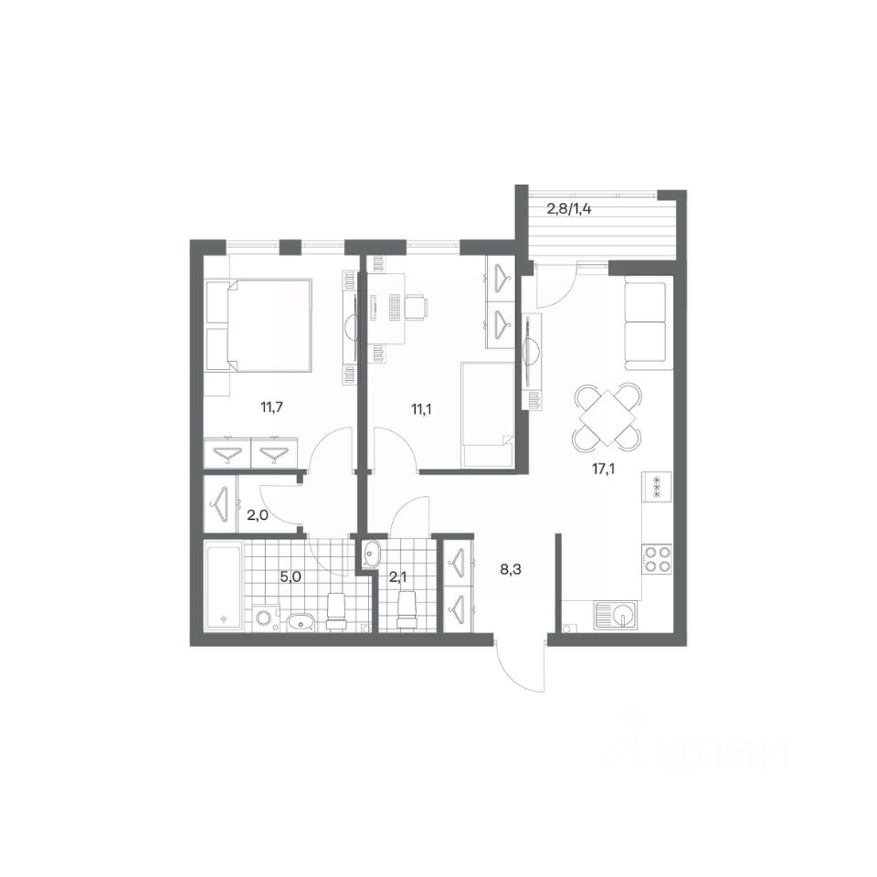 в Гагарина 30 от компании ГК "ТРЕСТ". Площадь кухни 17.1 м². Жилой комплекс комфорт-класса "Гагарина 30" расположен в Ленинградском районе Калининграда на улице Юрия Гагарина. Жилой комплекс включает в себя три корпуса высотой 9-18 этажей. Срок сдачи намечен на 1 квартал 2028 года.