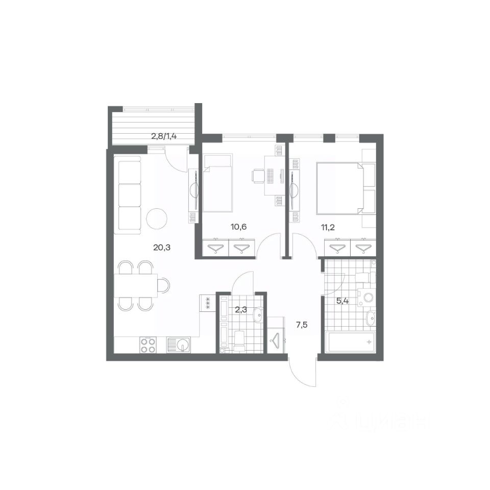 в Гагарина 30 от компании ГК "ТРЕСТ". Площадь кухни 20.3 м². Жилой комплекс комфорт-класса "Гагарина 30" расположен в Ленинградском районе Калининграда на улице Юрия Гагарина. Жилой комплекс включает в себя три корпуса высотой 9-18 этажей. Срок сдачи намечен на 1 квартал 2028 года.