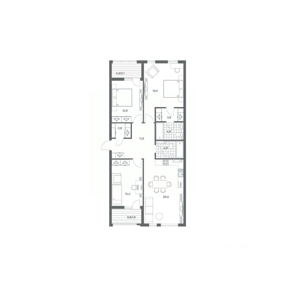 в Гагарина 30 от компании ГК "ТРЕСТ". Площадь кухни 25 м². Жилой комплекс комфорт-класса "Гагарина 30" расположен в Ленинградском районе Калининграда на улице Юрия Гагарина. Жилой комплекс включает в себя три корпуса высотой 9-18 этажей. Срок сдачи намечен на 1 квартал 2028 года.