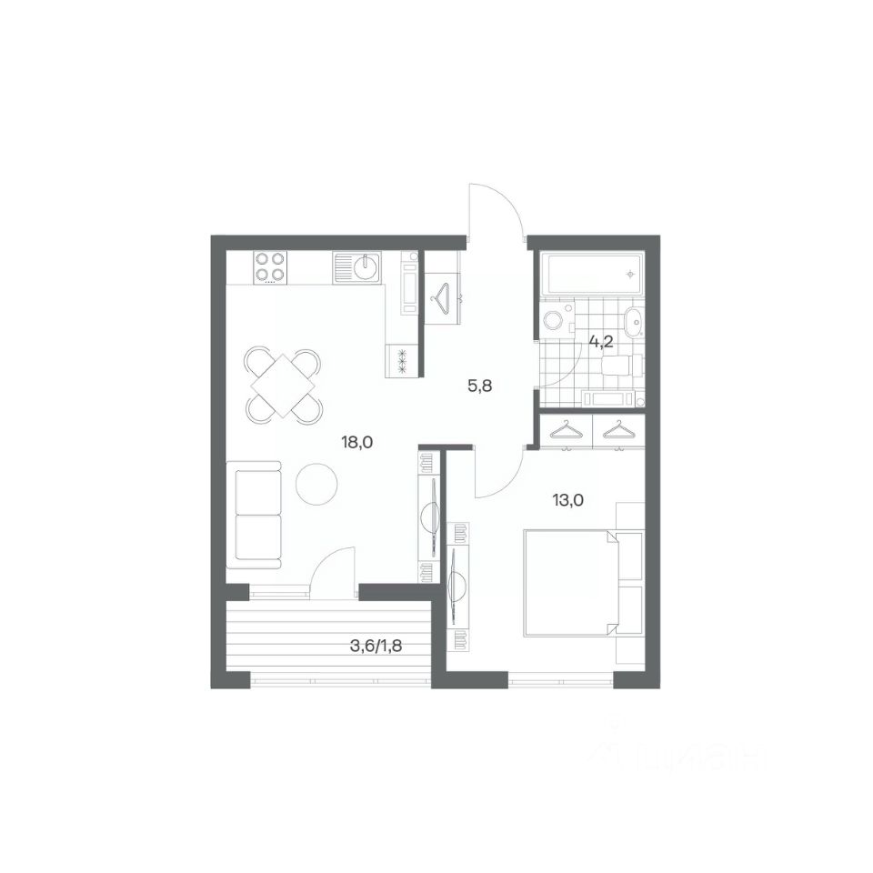 в Гагарина 30 от компании ГК "ТРЕСТ". Площадь кухни 18 м². Жилой комплекс комфорт-класса "Гагарина 30" расположен в Ленинградском районе Калининграда на улице Юрия Гагарина. Жилой комплекс включает в себя три корпуса высотой 9-18 этажей. Срок сдачи намечен на 1 квартал 2028 года.