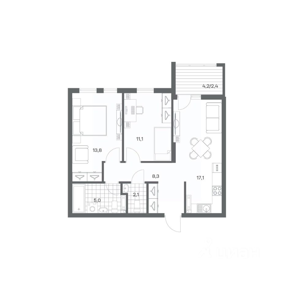 в Гагарина 30 от компании ГК "ТРЕСТ". Площадь кухни 17.1 м². Жилой комплекс комфорт-класса "Гагарина 30" расположен в Ленинградском районе Калининграда на улице Юрия Гагарина. Жилой комплекс включает в себя три корпуса высотой 9-18 этажей. Срок сдачи намечен на 1 квартал 2028 года.