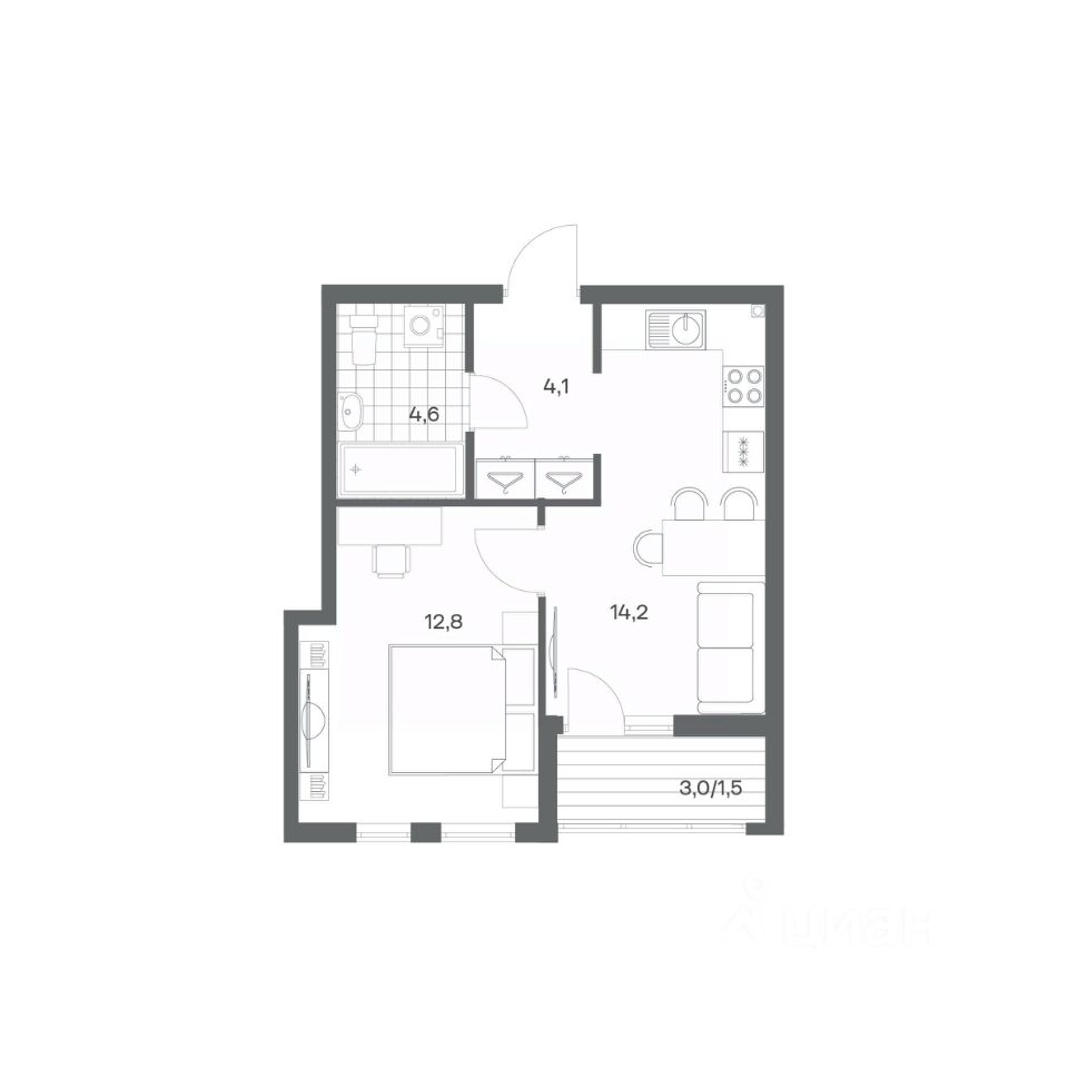 в Гагарина 30 от компании ГК "ТРЕСТ". Площадь кухни 14.2 м². Жилой комплекс комфорт-класса "Гагарина 30" расположен в Ленинградском районе Калининграда на улице Юрия Гагарина. Жилой комплекс включает в себя три корпуса высотой 9-18 этажей. Срок сдачи намечен на 1 квартал 2028 года.