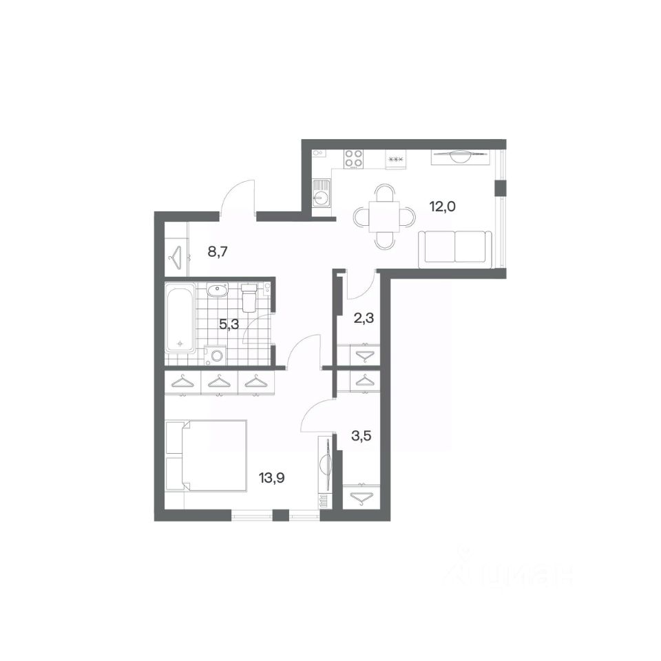 в Гагарина 30 от компании ГК "ТРЕСТ". Площадь кухни 12 м². Жилой комплекс комфорт-класса "Гагарина 30" расположен в Ленинградском районе Калининграда на улице Юрия Гагарина. Жилой комплекс включает в себя три корпуса высотой 9-18 этажей. Срок сдачи намечен на 1 квартал 2028 года.