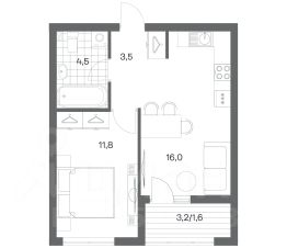 в Гагарина 30 от компании ГК "ТРЕСТ". Площадь кухни 16 м². Жилой комплекс комфорт-класса "Гагарина 30" расположен в Ленинградском районе Калининграда на улице Юрия Гагарина. Жилой комплекс включает в себя три корпуса высотой 9-18 этажей. Срок сдачи намечен на 1 квартал 2028 года.