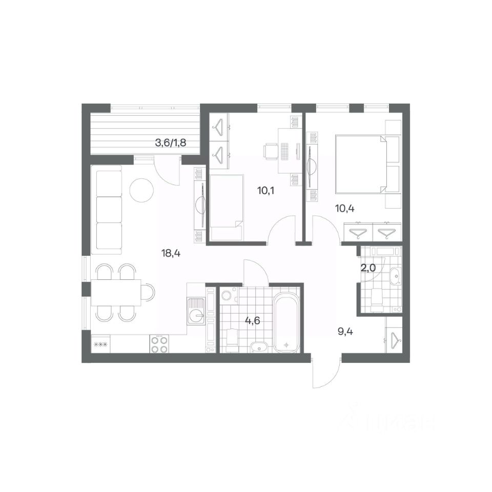в Гагарина 30 от компании ГК "ТРЕСТ". Площадь кухни 18.4 м². Жилой комплекс комфорт-класса "Гагарина 30" расположен в Ленинградском районе Калининграда на улице Юрия Гагарина. Жилой комплекс включает в себя три корпуса высотой 9-18 этажей. Срок сдачи намечен на 1 квартал 2028 года.