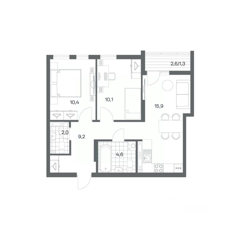 в Гагарина 30 от компании ГК "ТРЕСТ". Площадь кухни 15.9 м². Жилой комплекс комфорт-класса "Гагарина 30" расположен в Ленинградском районе Калининграда на улице Юрия Гагарина. Жилой комплекс включает в себя три корпуса высотой 9-18 этажей. Срок сдачи намечен на 1 квартал 2028 года.