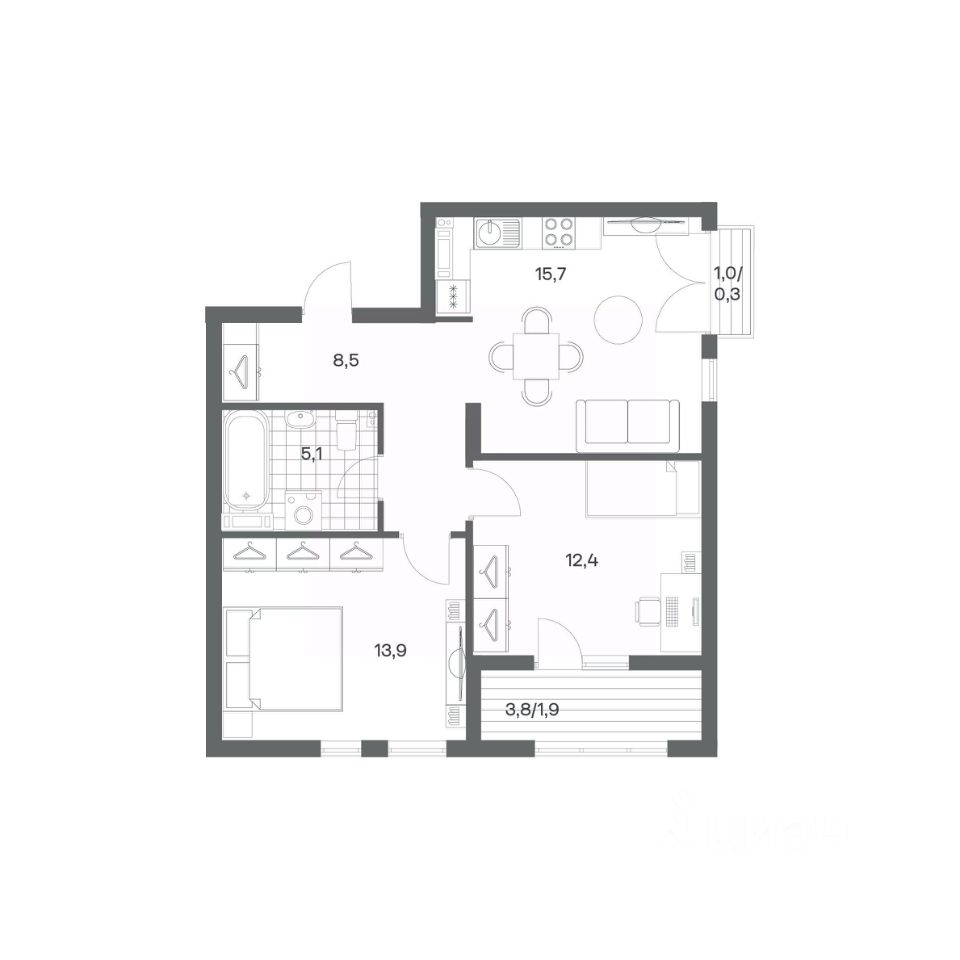 в Гагарина 30 от компании ГК "ТРЕСТ". Площадь кухни 15.7 м². Жилой комплекс комфорт-класса "Гагарина 30" расположен в Ленинградском районе Калининграда на улице Юрия Гагарина. Жилой комплекс включает в себя три корпуса высотой 9-18 этажей. Срок сдачи намечен на 1 квартал 2028 года.