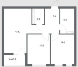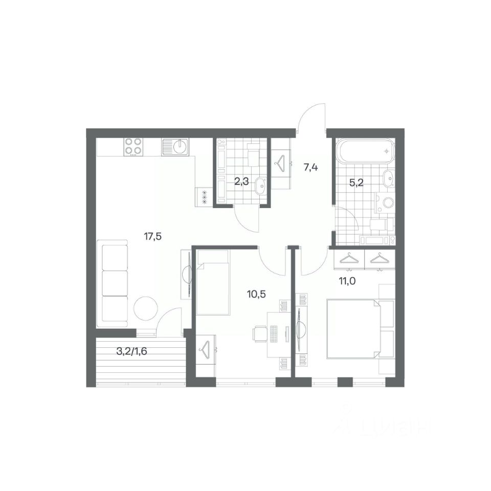 в Гагарина 30 от компании ГК "ТРЕСТ". Площадь кухни 17.5 м². Жилой комплекс комфорт-класса "Гагарина 30" расположен в Ленинградском районе Калининграда на улице Юрия Гагарина. Жилой комплекс включает в себя три корпуса высотой 9-18 этажей. Срок сдачи намечен на 1 квартал 2028 года.