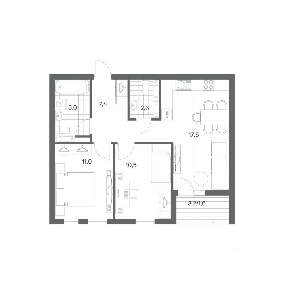 в Гагарина 30 от компании ГК "ТРЕСТ". Площадь кухни 17.5 м². Жилой комплекс комфорт-класса "Гагарина 30" расположен в Ленинградском районе Калининграда на улице Юрия Гагарина. Жилой комплекс включает в себя три корпуса высотой 9-18 этажей. Срок сдачи намечен на 1 квартал 2028 года.
