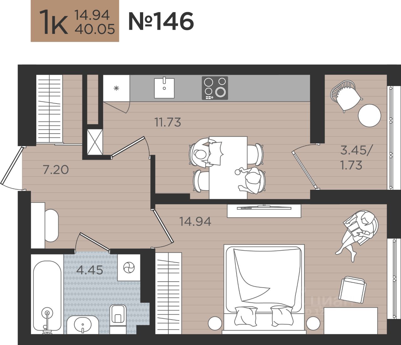 Продаётся комфортабельная 1-комнатная квартира 146 на Советском проспекте, 50 в ЖК "МОЙ ГОРОД"