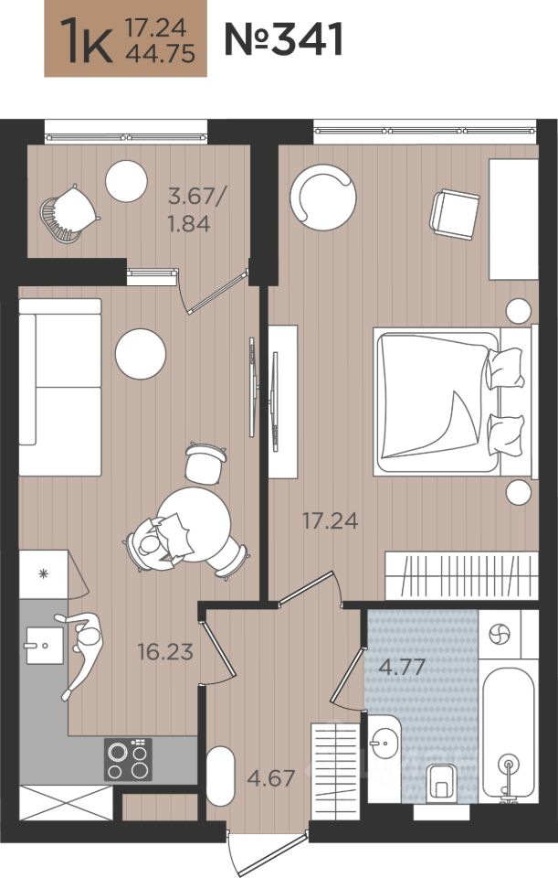 Продаётся комфортабельная 1-комнатная квартира 341 на Советском проспекте, 50 в ЖК "МОЙ ГОРОД"