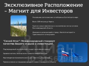 **Локация - 150 метров до Синего Флага:**Представьте: каждое утро пение чаек, свежий морской бриз и бескрайние просторы самого западного города России, Балтийска. Пляж здесь не просто широкий, а с потенциалом стать новым центром притяжения. Ваши апартаменты будут там, где другие мечтают провести отпуск!