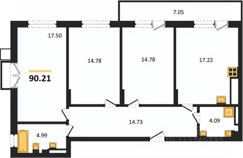 Квартира: 3 к 91,20 кв.м., 4 этаж в комплексе Аэро, 1 очередь, корп.D, сдача: 3кв. , этажей: 7, адрес Малое Исаково п., Первая ул., д. 1 корп 4, Застройщик: ГК Расцвет.