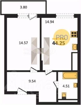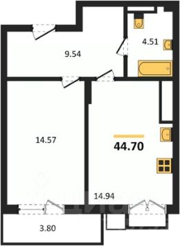 Квартира: 1 к 44,87 кв.м., 7 этаж в комплексе Аэро, 1 очередь, корп.D, сдача: 3кв. , этажей: 7, адрес Малое Исаково п., Первая ул., д. 1 корп 4, Застройщик: ГК Расцвет.